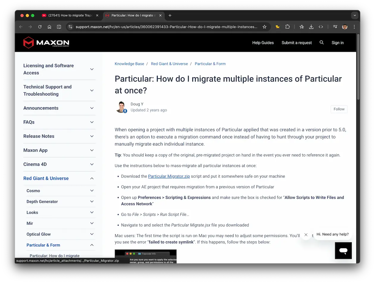 在处理 After Effects 工程使用 Particular 插件时,难免得翻找图层再进行迁移设置。近期搜罗到 Maxon 官方社区 的解决方案,经验证完全可行🥰